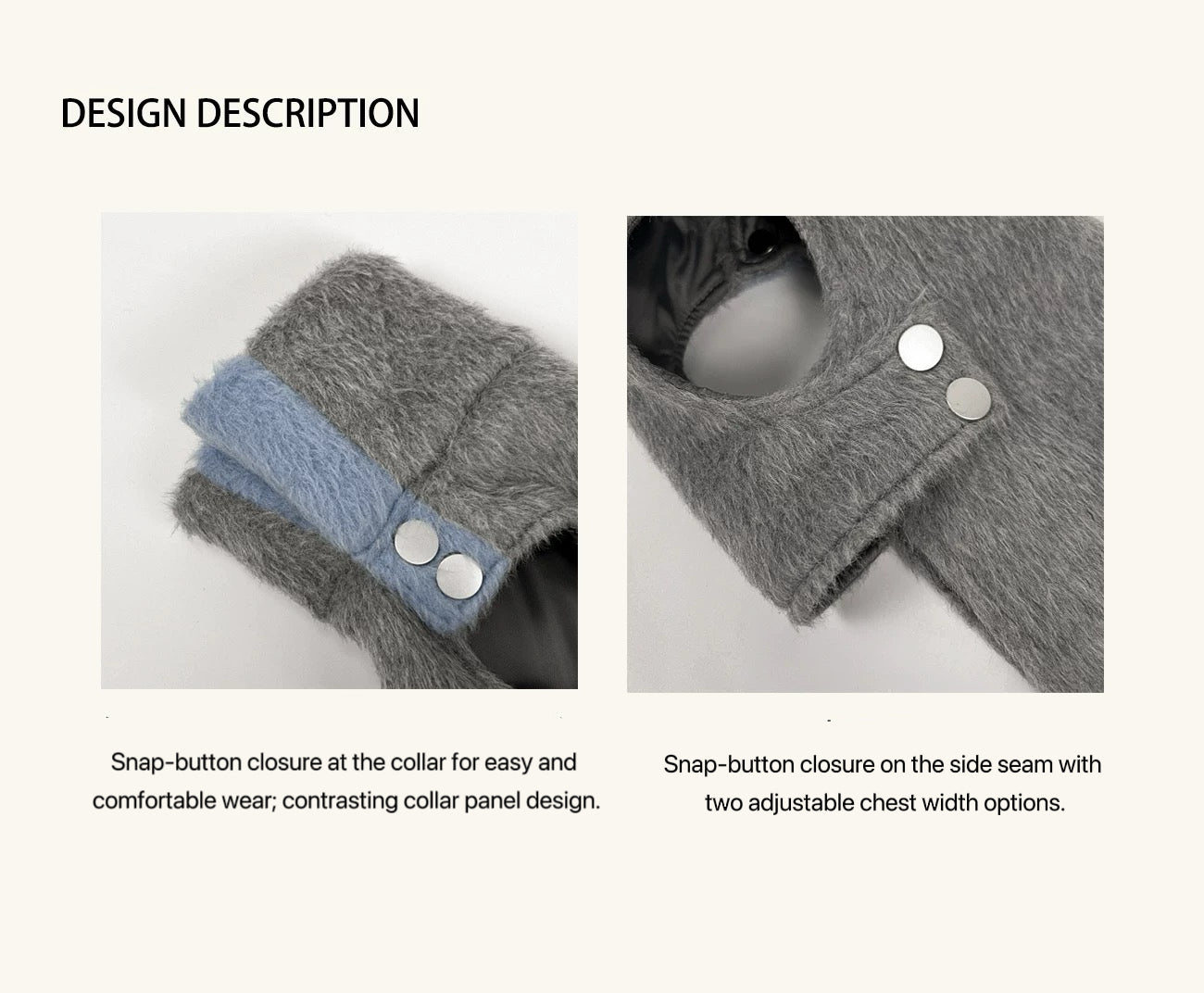The cozy inner lining keeps your dog warm during chilly walks, while the easy snap-button closure and adjustable chest strap ensure a snug yet comfortable fit. Whether you’re strolling through city streets or enjoying a café break, this overcoat is designed for pups who love to stand out with subtle sophistication.