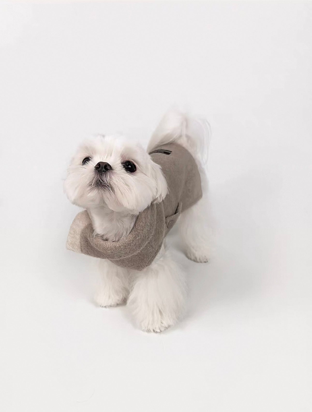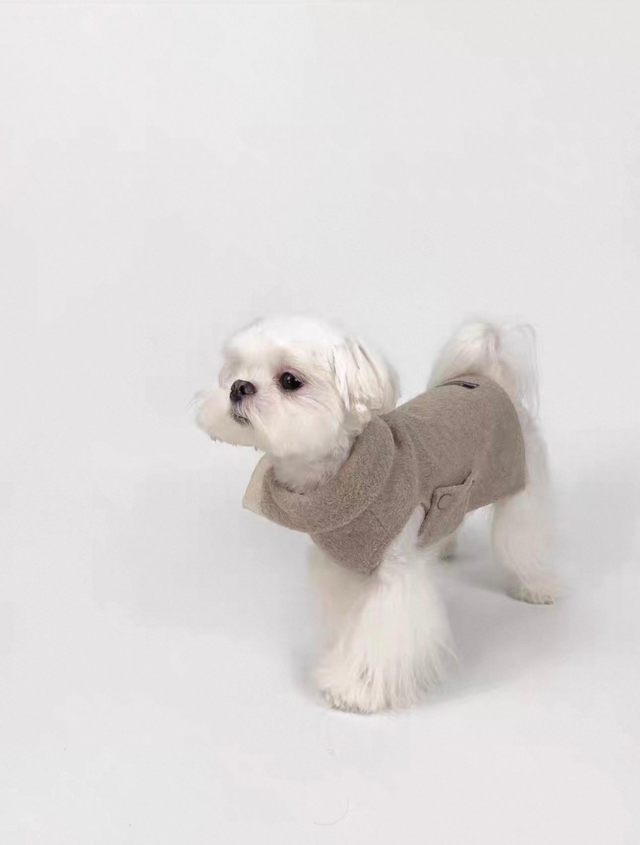 Add a touch of timeless elegance to your pup’s winter wardrobe with the British Style Dog Overcoat. Crafted from a soft wool-blend fabric in a neutral grey tone, this coat features a classic folded collar and a plush faux fur bow in muted blue — the perfect blend of function and charm.