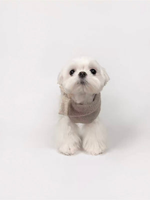 Home British Style Dog Overcoat – Folded Collar & Faux Fur Bow