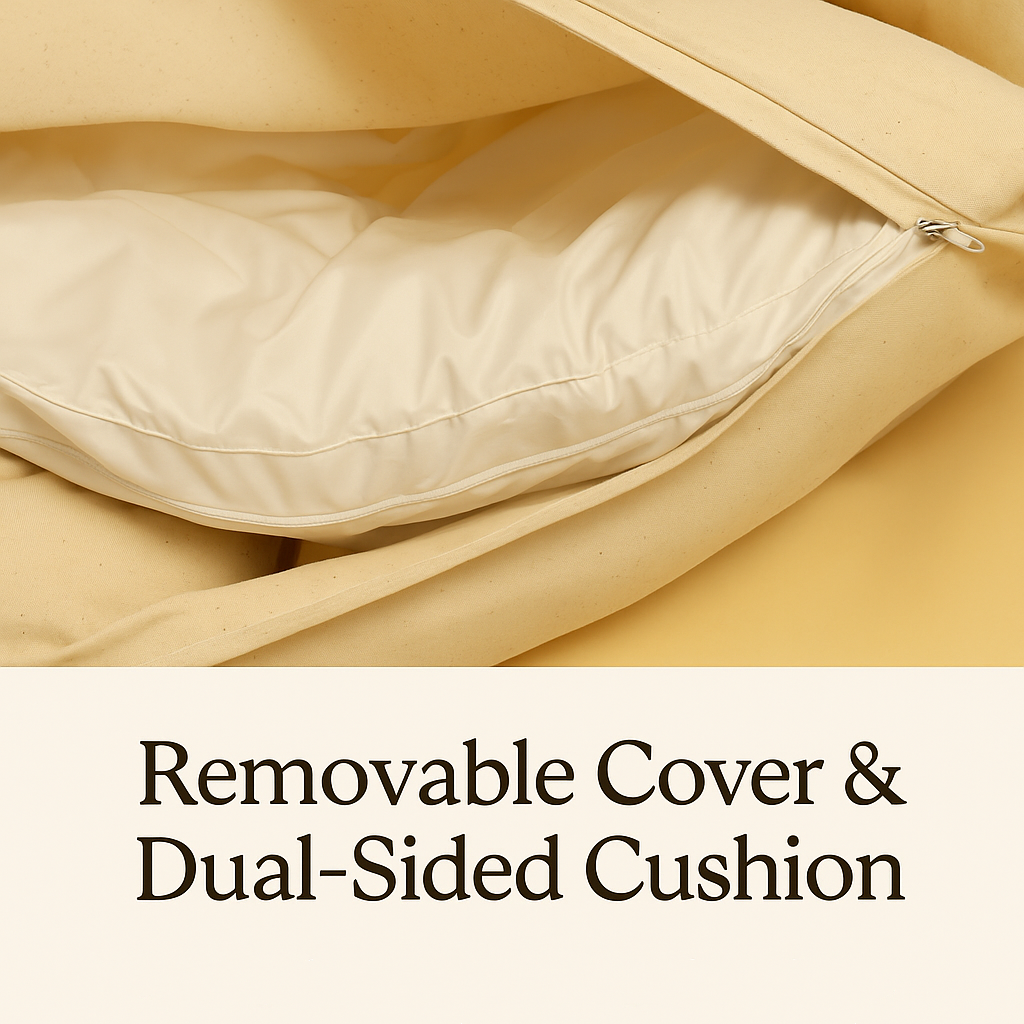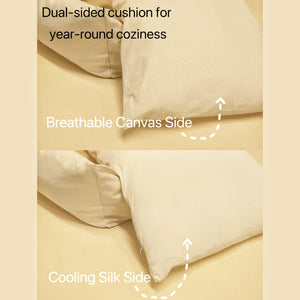 Breathable canvas for everyday lounging, and cooling silk for warm-weather naps — one bed, two comforts.