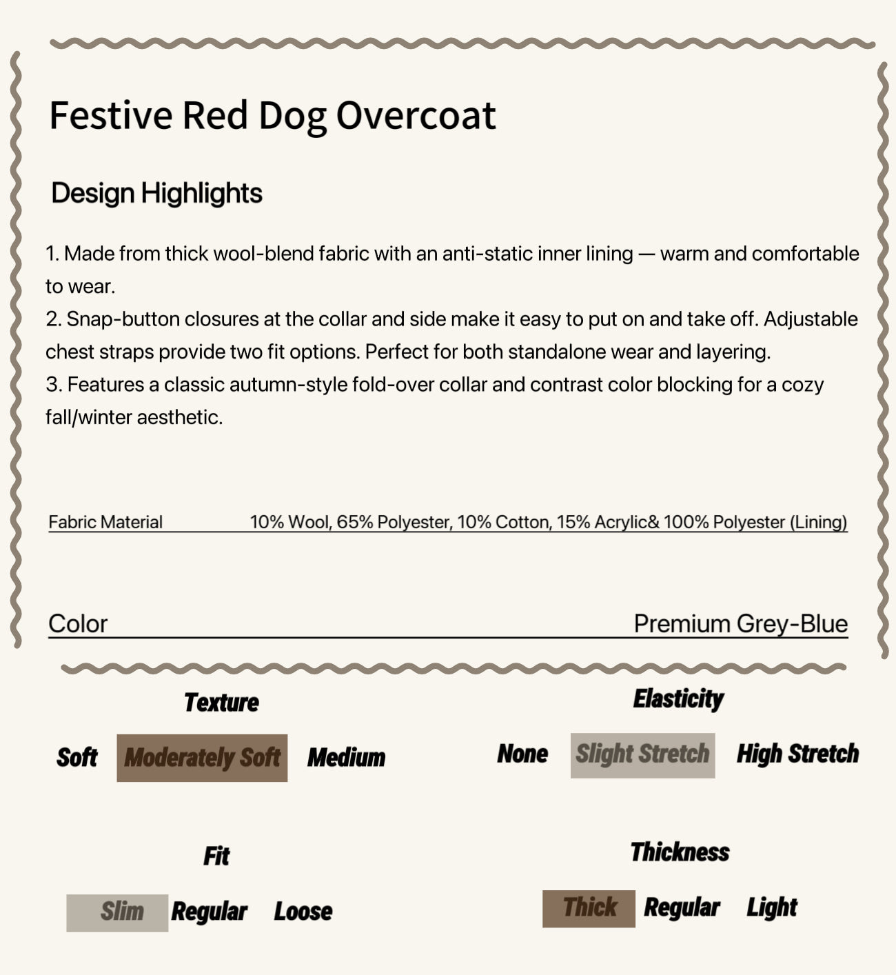 Festive Red Dog Overcoat – Wool-Blend Holiday Jacket with Folded Collar