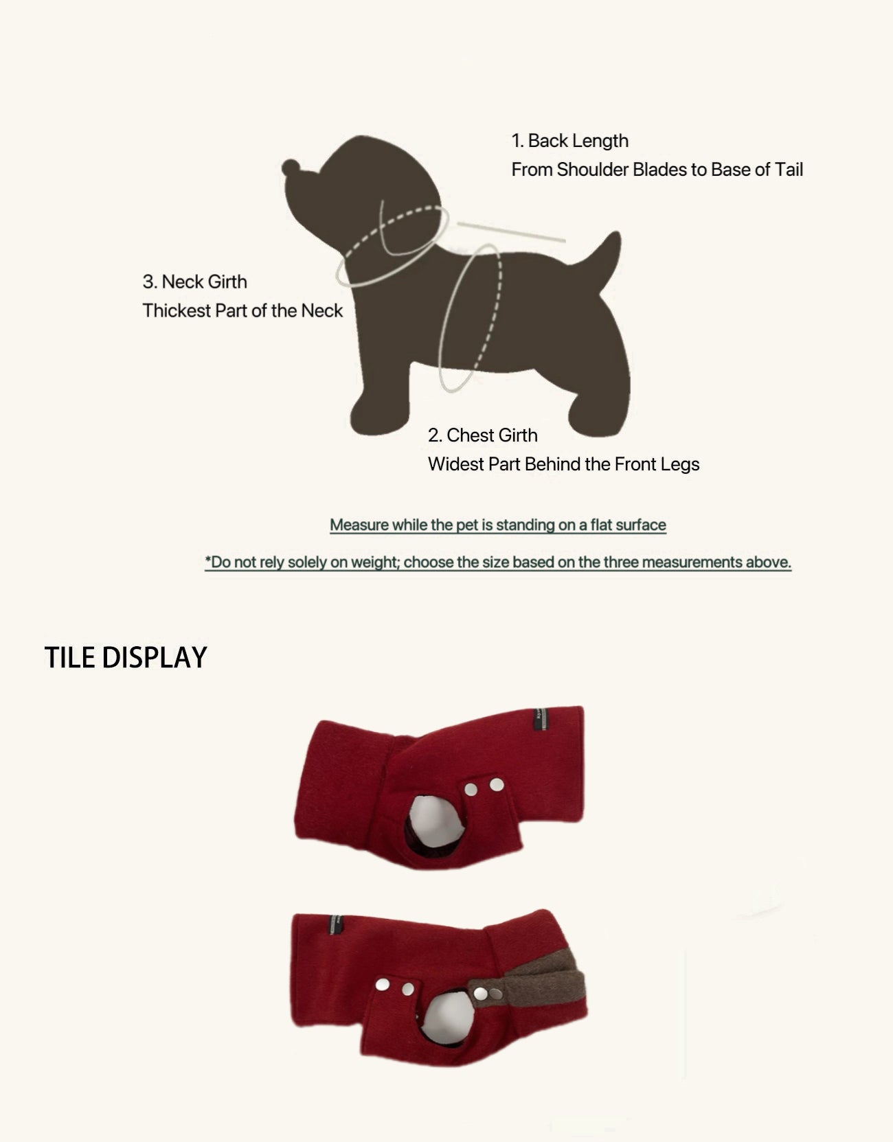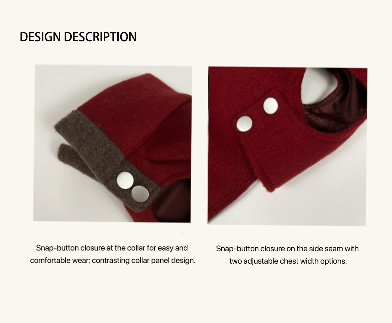 Make every celebration extra special with the FurHugs Holiday Dog Coat in festive wine red. Whether it’s a Christmas stroll or Lunar New Year gathering, this classic wool-blend overcoat adds warmth and elegance to your pup’s winter wardrobe.