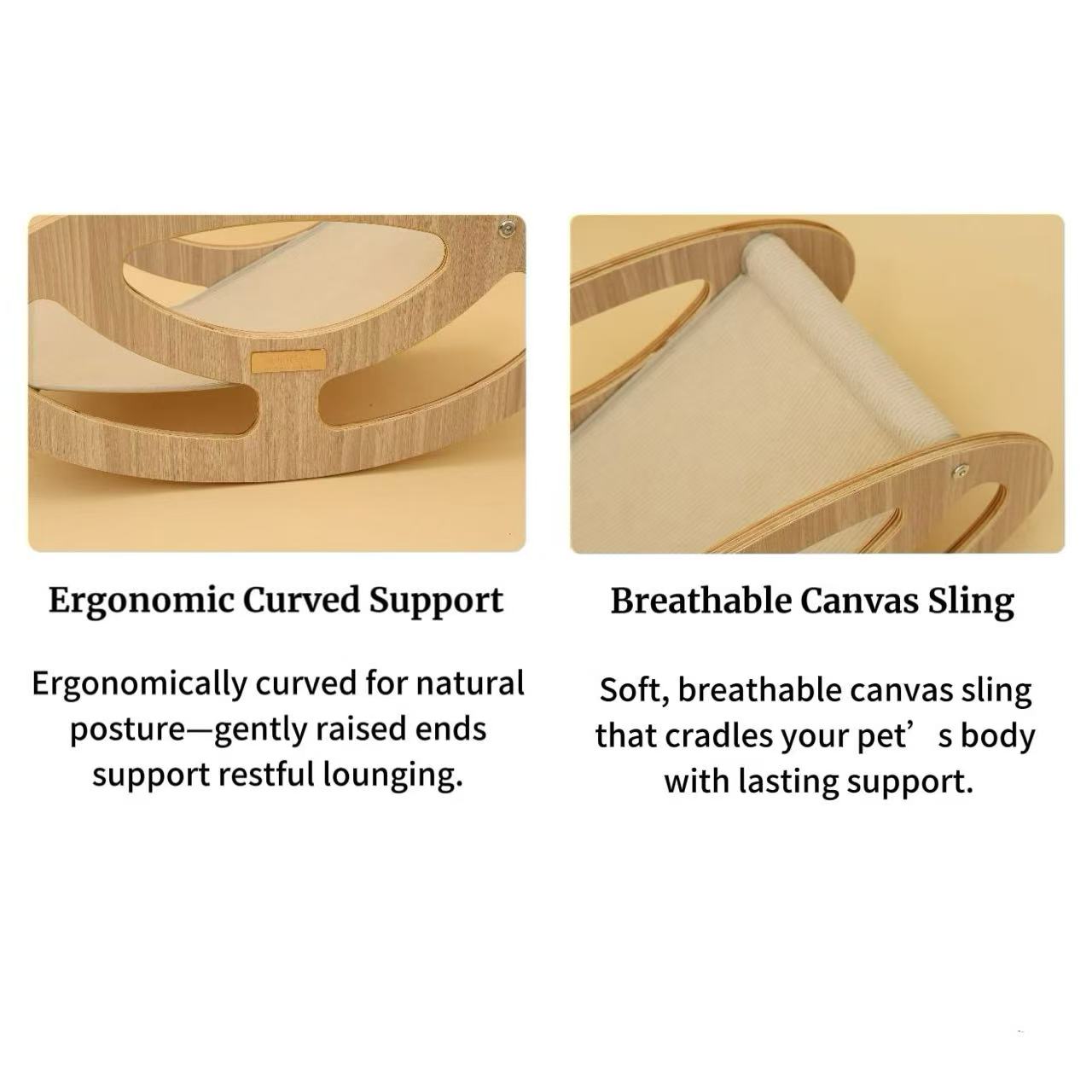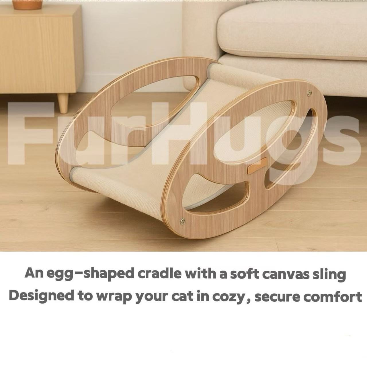 The FurHugs EggNest™ is a gently curved pet lounger designed to hug your pet’s body with ergonomic care. Crafted with a solid wood base and a soft, breathable canvas sling, it offers the perfect balance of support and coziness for restful lounging.