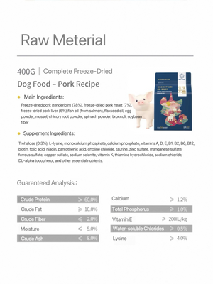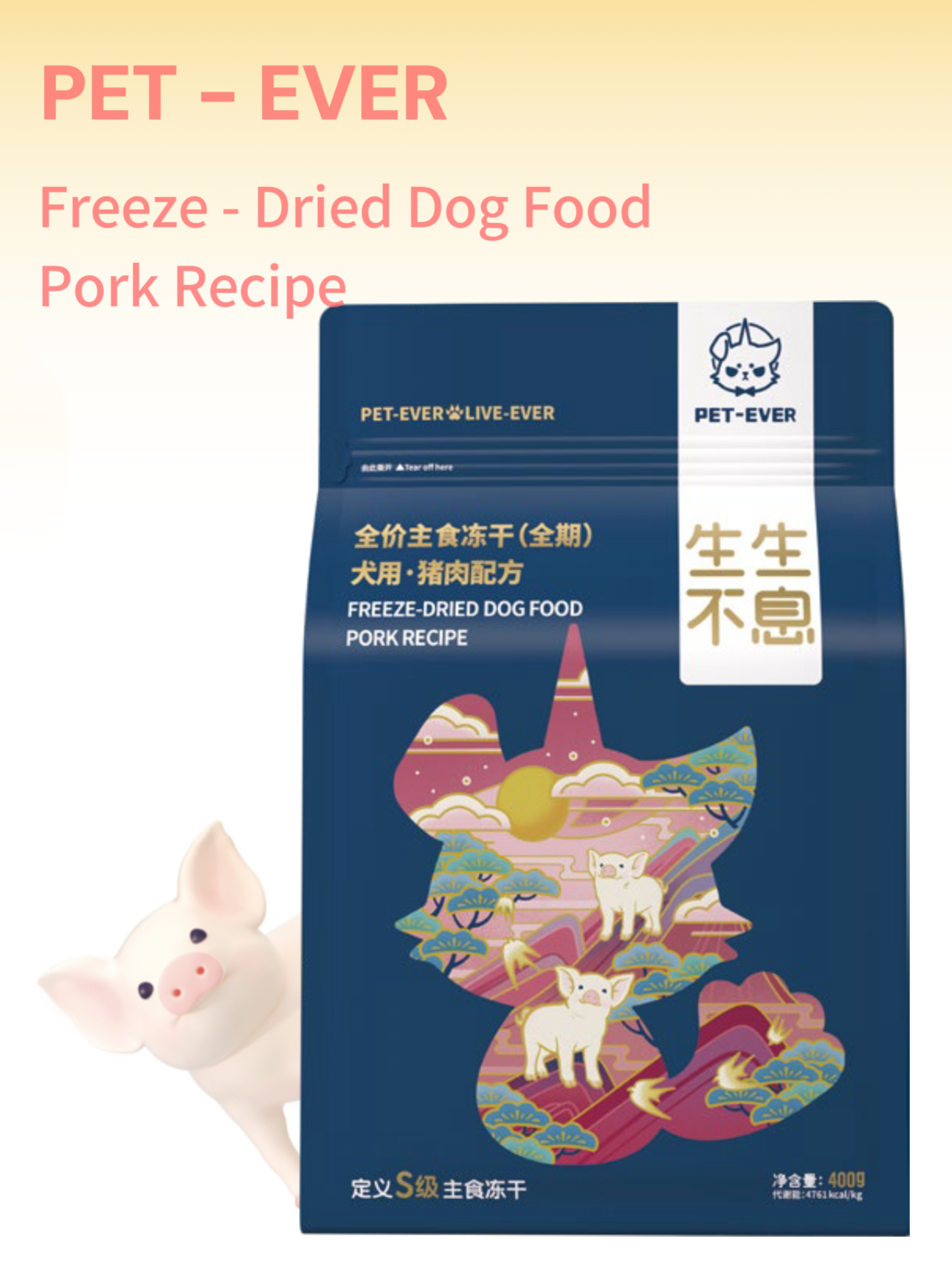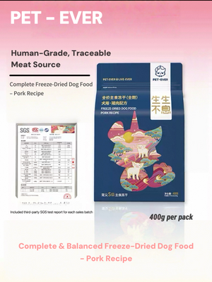 PET-EVER Freeze-Dried Dog Food – Pork Recipe (400g, All Life Stages)