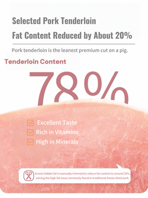 PET-EVER’s “Live-Ever” pork formula is a freeze-dried, protein-rich recipe designed for daily feeding across all life stages. Using over 94% real pork-based ingredients—including lean tenderloin, heart, and liver—this recipe provides full-spectrum nutrition while remaining gentle on digestion. Carefully trimmed to reduce excess fat, it’s an ideal choice for dogs needing a clean, flavorful, and balanced meal.