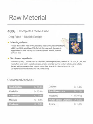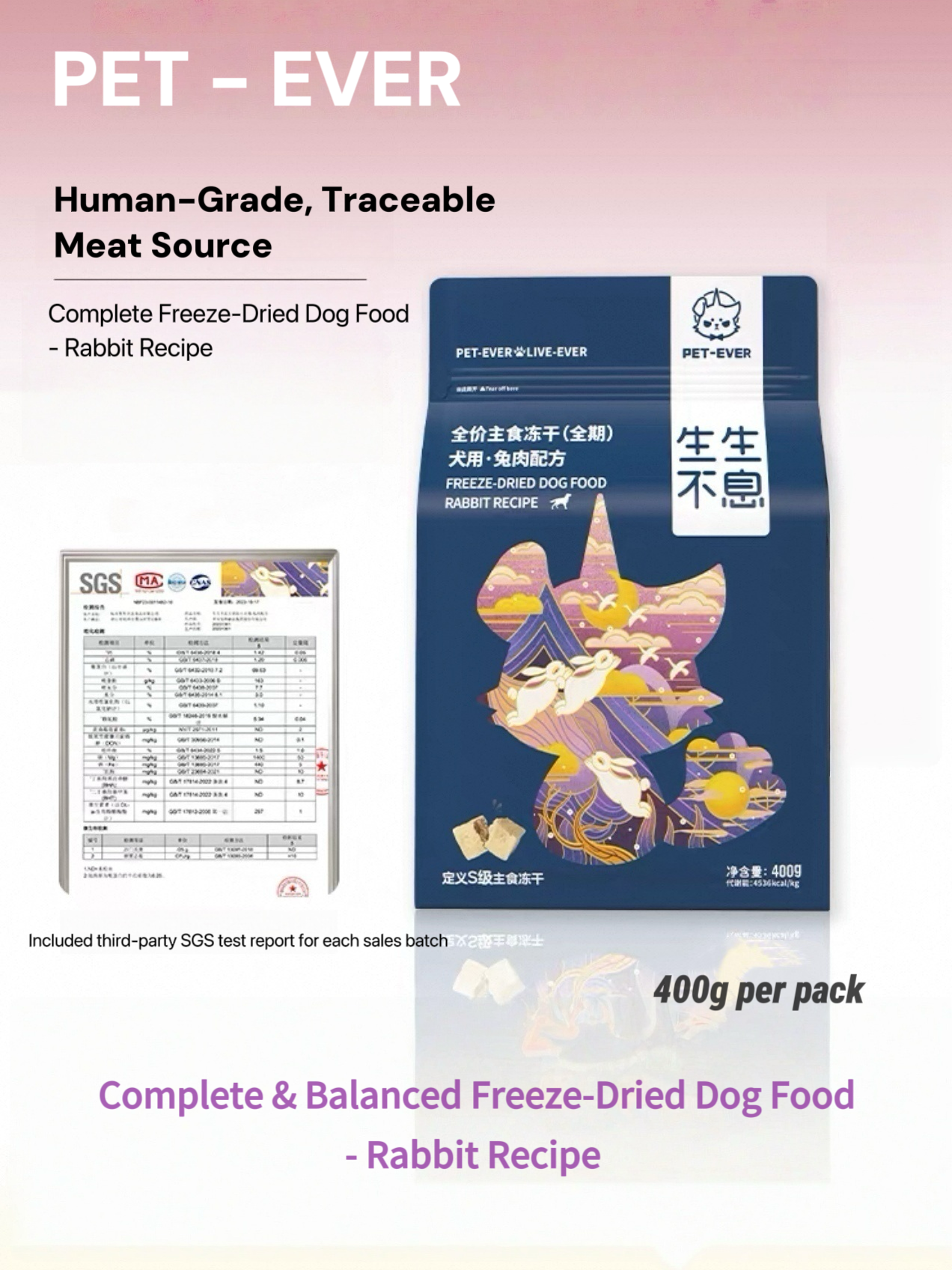 PET-EVER Freeze-Dried Dog Food – Rabbit Recipe (400g, All Life Stages)