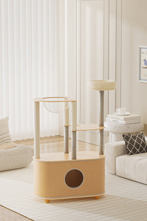 Its neutral, minimalist design blends effortlessly into any home, offering your cat a safe, stylish, and functional playground.