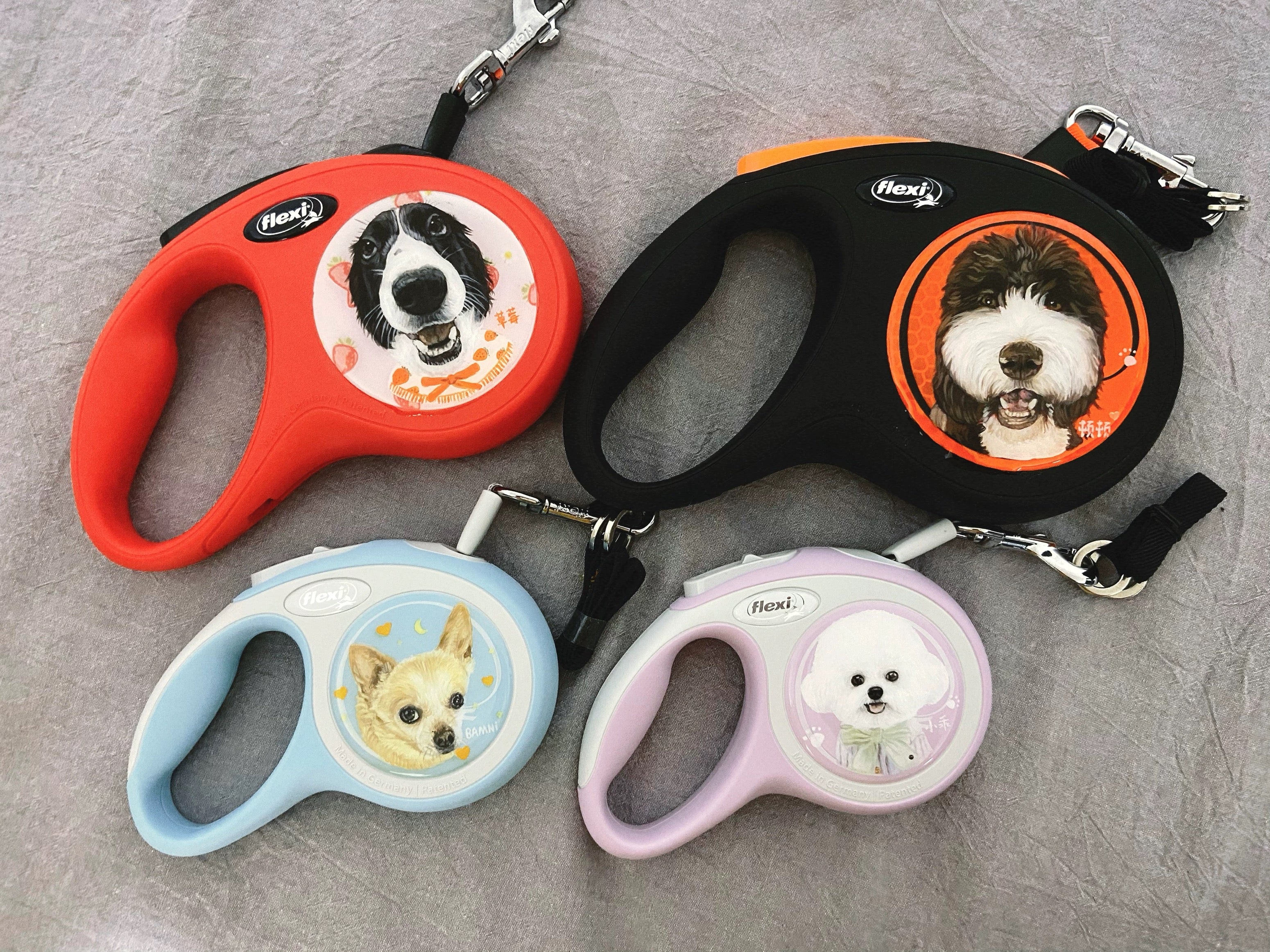 FurHugs uses the premium Flexi retractable leash and hand-paints your dog’s portrait on the handle, turning every walk into a little gallery moment.