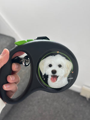 Custom Hand-Painted Flexi Leash — send your dog’s photo to FurhugsPet@gmail.com after checkout. Handmade to order; ~3 weeks production before shipping.