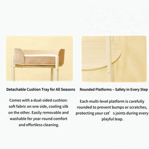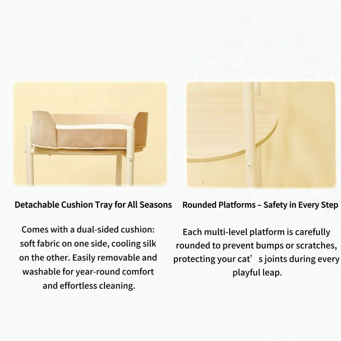 The soft dual-season cushion sits atop a removable tray, making cleaning and seasonal changes effortless. Say goodbye to bulky, fuzzy cat trees—and hello to clean lines and feline-approved function.