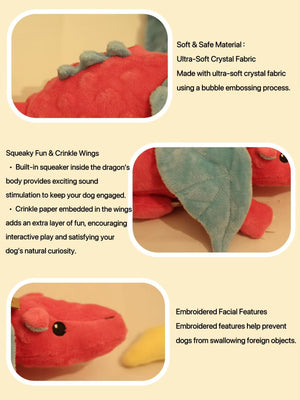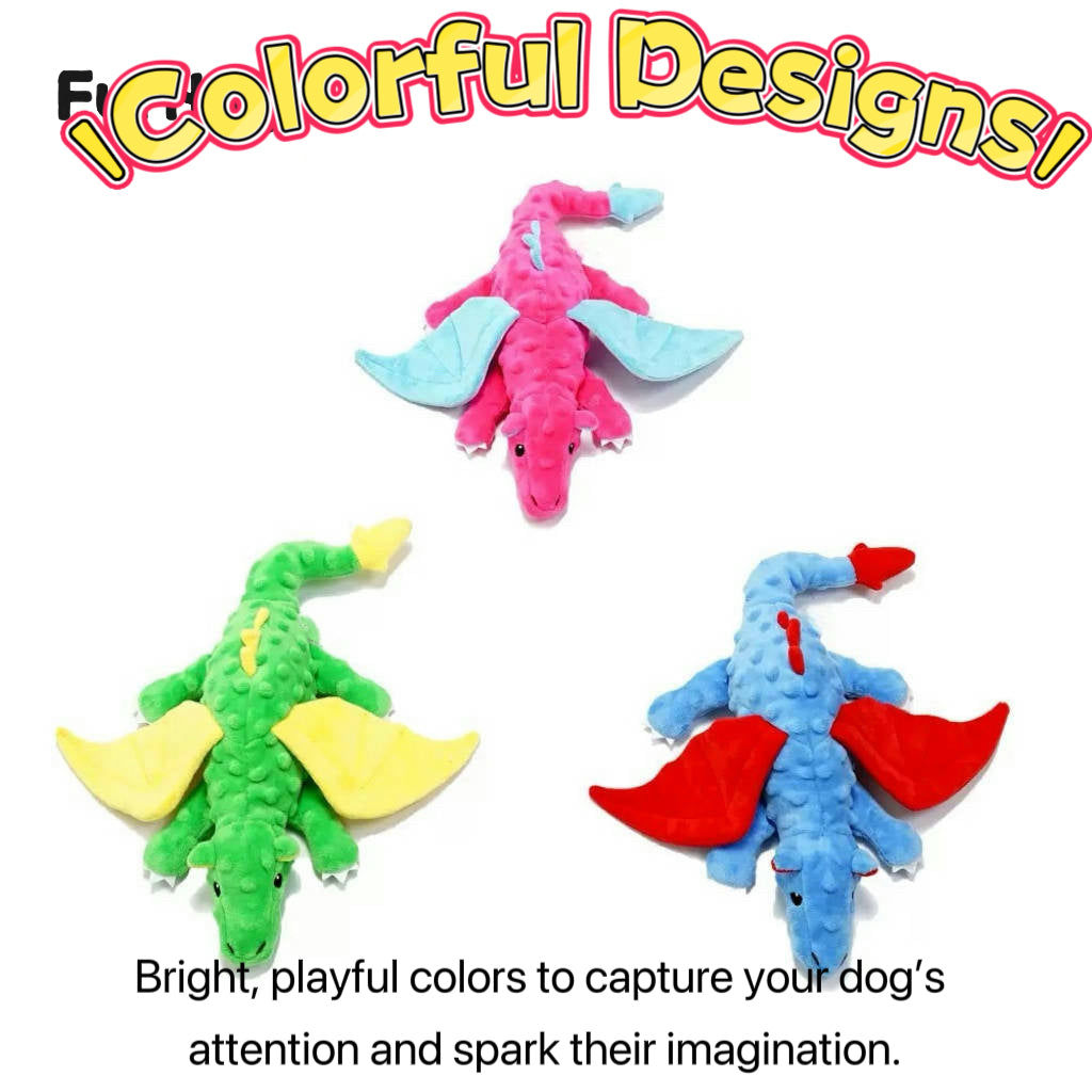 FurHugs Squeaky Dragon Plush Dog Toy – Soft, Crinkly, and Colorful