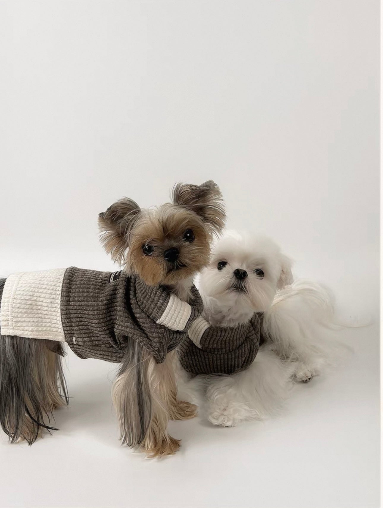 KyawKyaw Two-Tone Turtleneck Knit Sweater for Dogs and Cats Brown – Soft, Stylish & Cozy Fit