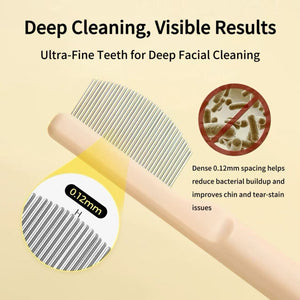 Gentle and precise — designed for cats’ delicate facial areas. Ultra-fine 0.12mm stainless-steel teeth reach deep to remove tear stains, chin dirt, and fine debris without pulling fur. Lightweight and easy to control with a long ergonomic handle.
