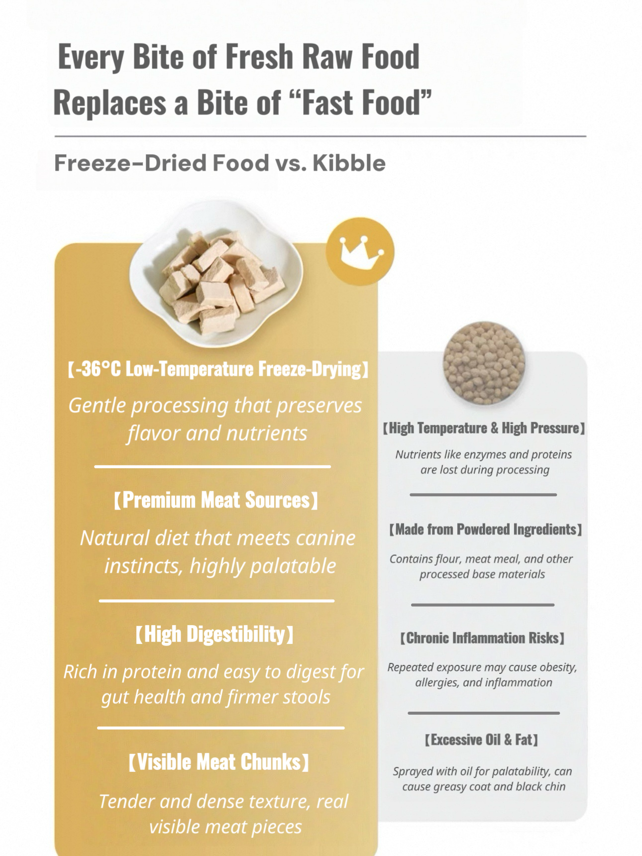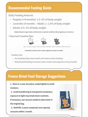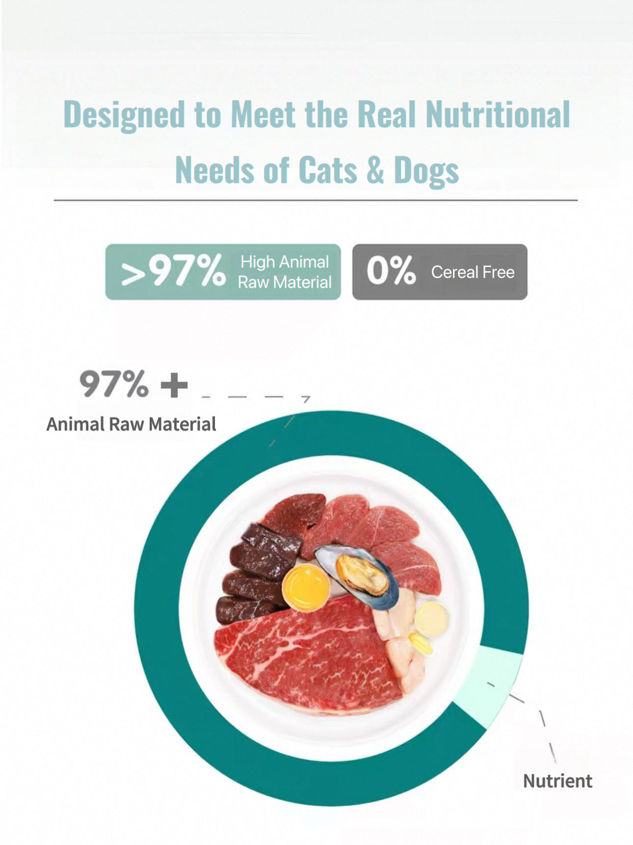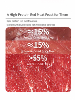 • 🥩 55% freeze-dried beef + 15% beef liver + 15% duck meat