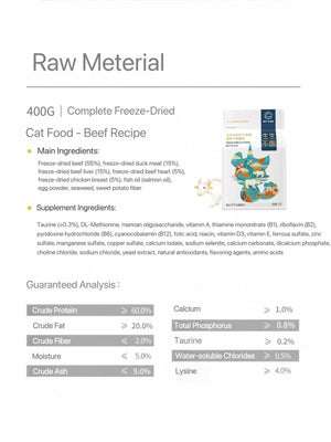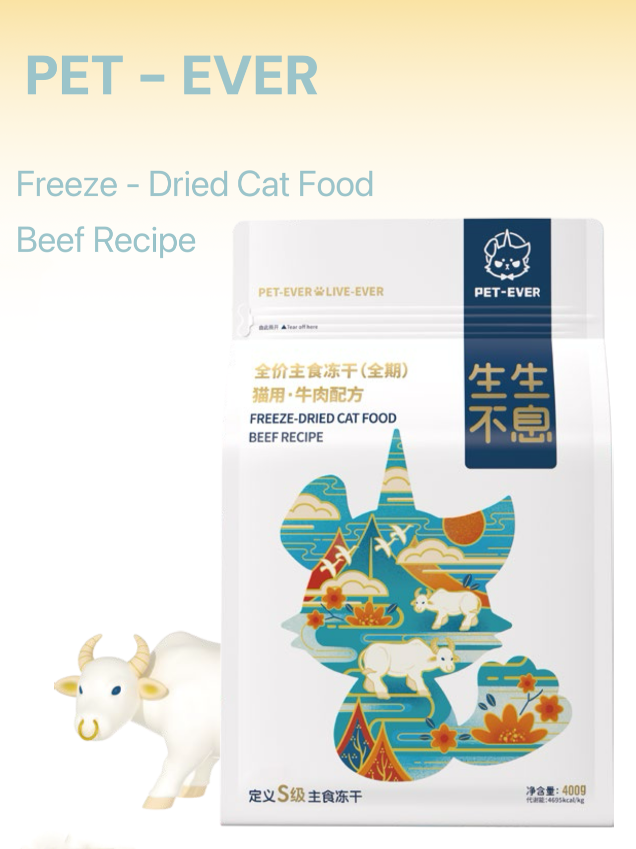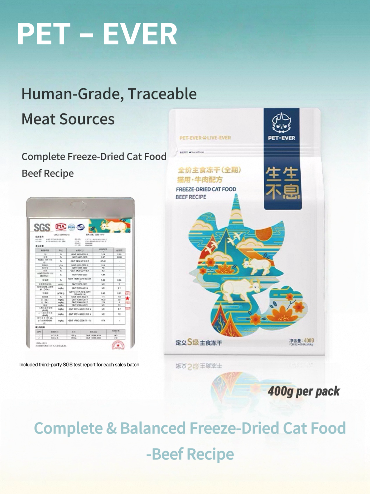 PET-EVER Freeze-Dried Cat Food – Beef Recipe (400g, All Life Stages)