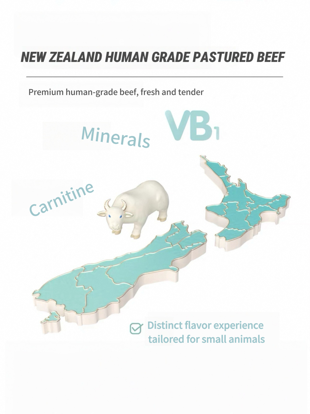 Satisfy your carnivorous cat’s instincts with PET-EVER’s Freeze-Dried Beef Recipe, crafted with over 90% premium animal ingredients including New Zealand pasture-raised beef, duck, liver, and heart. Specially formulated for all life stages, this high-protein, low-fat complete diet supports muscle growth, healthy skin, and optimal digestion.