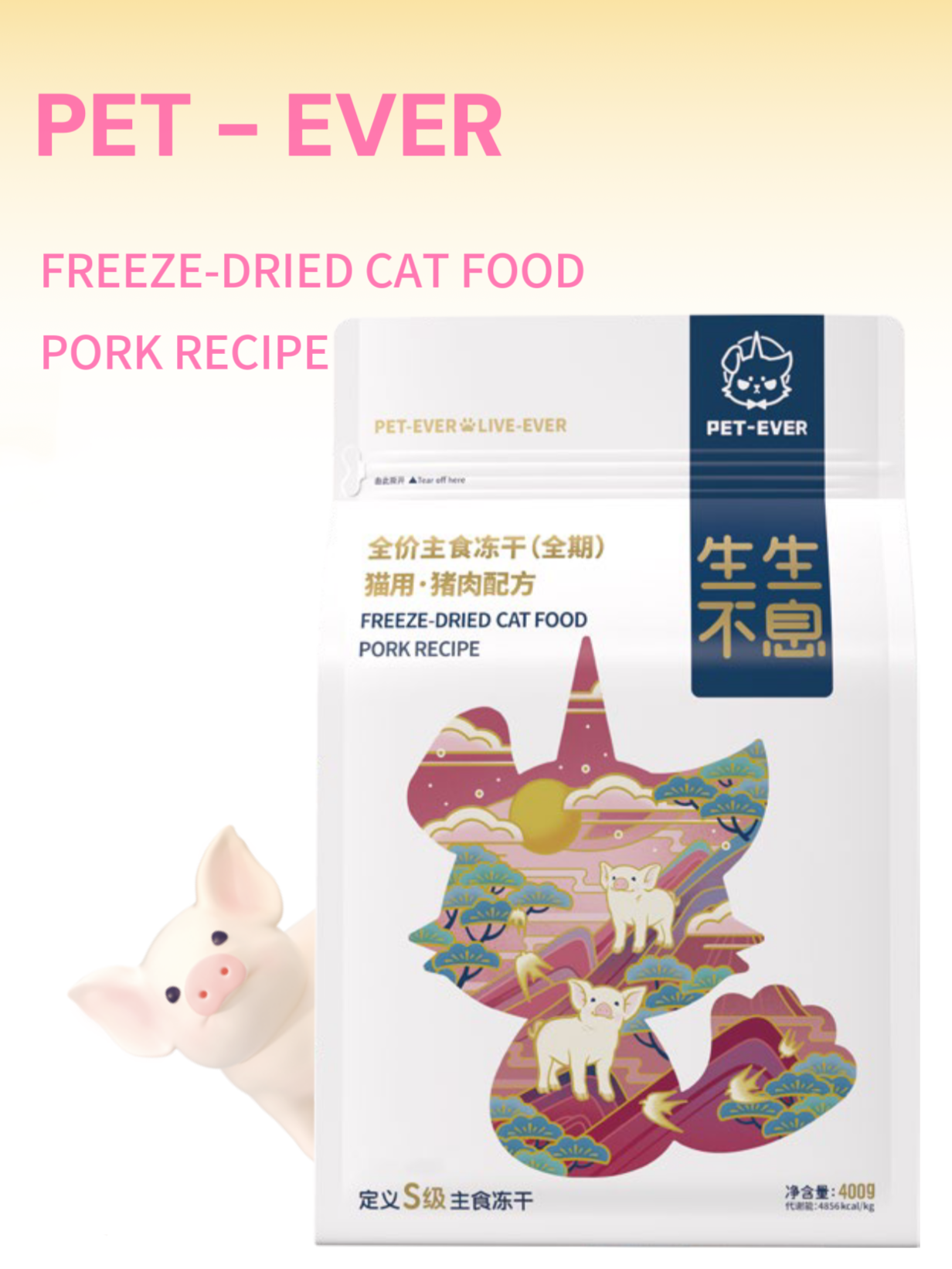 PET-EVER Freeze-Dried Cat Food – Pork Recipe (400g, All Life Stages)