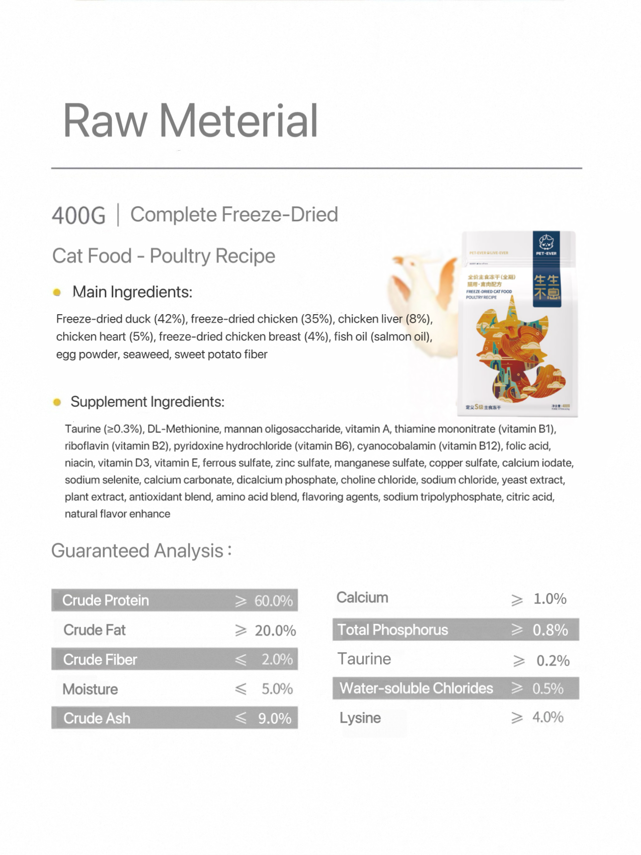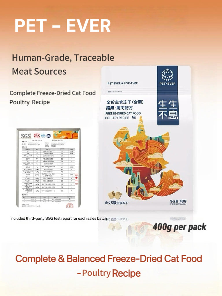 PET-EVER Freeze-Dried Cat Food – Poultry Recipe (400g, All Life Stages)