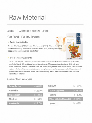 Give your cat the gift of real nutrition with PET-EVER’s Freeze-Dried Poultry Recipe. Made from 92% premium duck and chicken meat, liver, and heart, this complete and balanced cat food is crafted for all life stages. Enriched with essential vitamins, taurine, and natural fish oil, it supports healthy digestion, shiny coat, and strong immunity—perfect for picky eaters and sensitive cats alike. Grain-free, highly digestible, and irresistibly delicious.