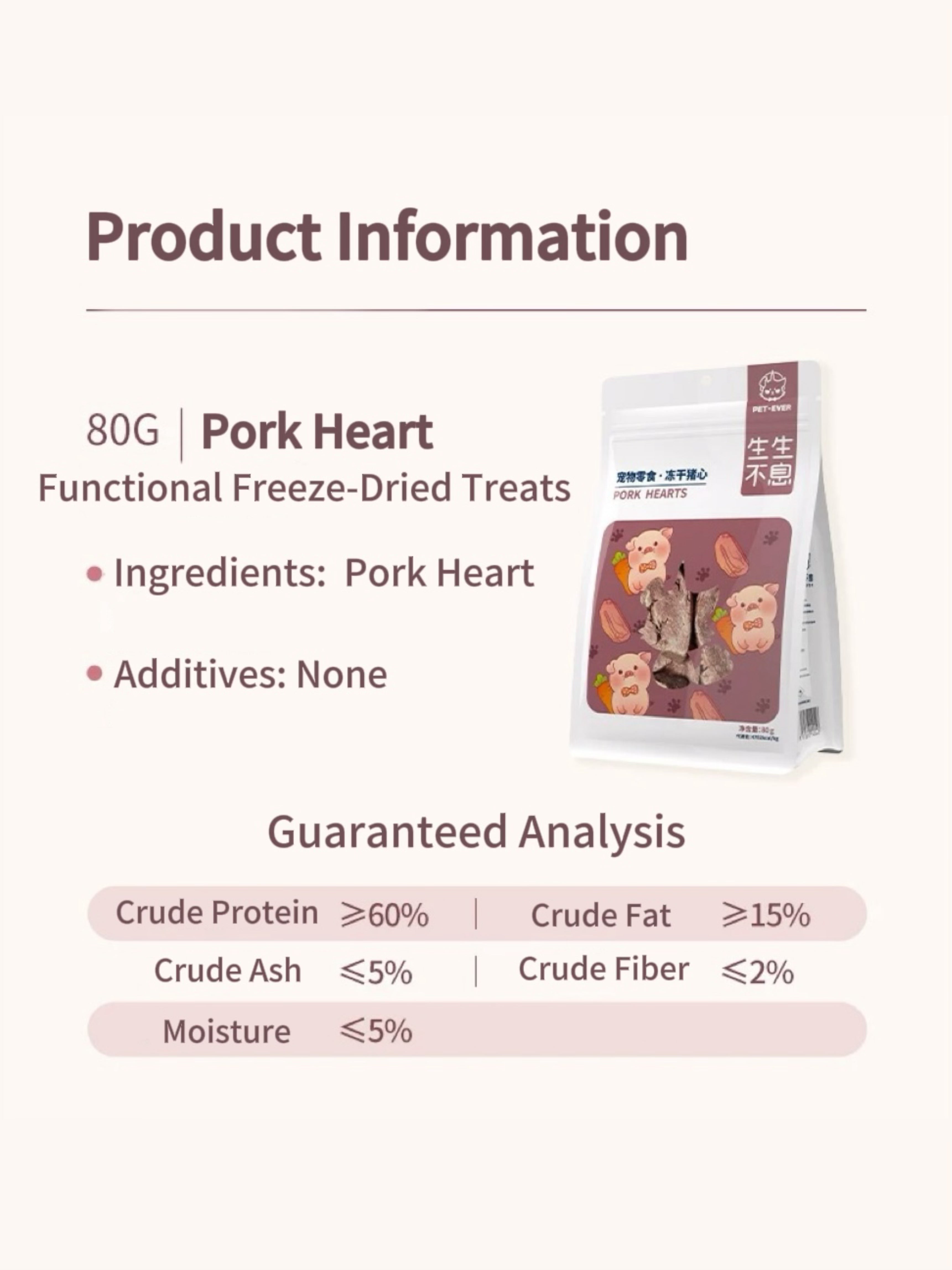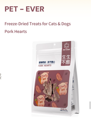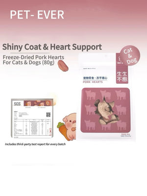 PET-EVER Freeze-Dried Pork Hearts (80g) – Nutrient-Rich Treats for Cats & Dogs