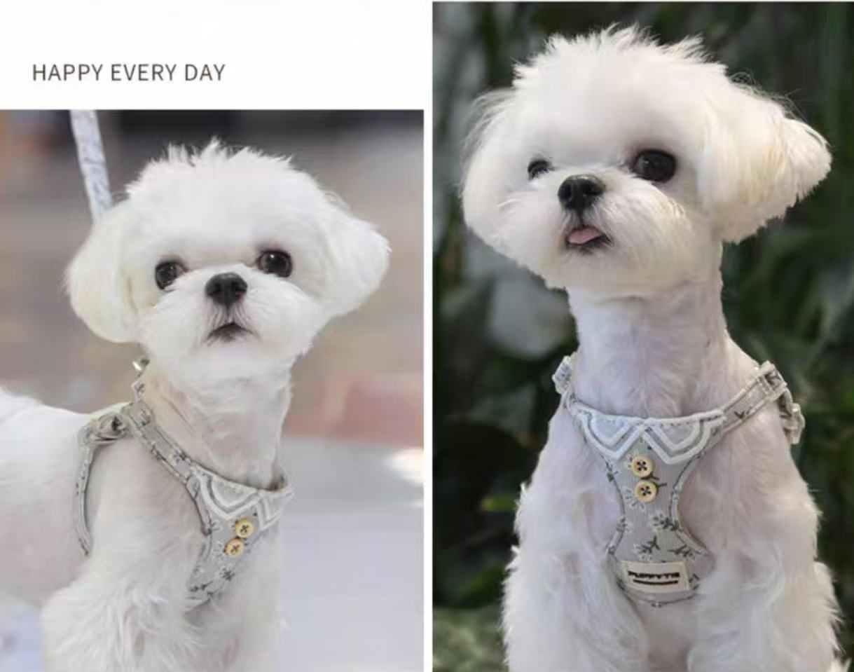 Wrap your furry friend in the soft charm of the PUPPYTIE Garden Series Harness, designed with gentle florals, soft-touch fabric, and an adorable button detail for a vintage-inspired look.