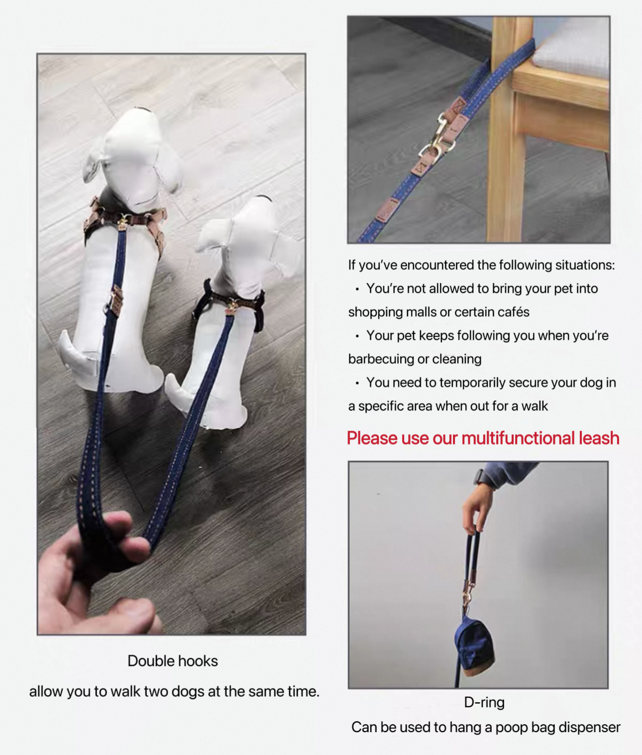 Give your pup both style and function with the PUPPYTIE Premium Leather Dog Harness. Crafted with genuine leather and durable metal hardware, this harness offers a secure, comfortable fit and a sleek, modern look. The dual-hook design allows for easy double-leash walking or better control, while the adjustable straps ensure a perfect fit for small and medium-sized dogs.